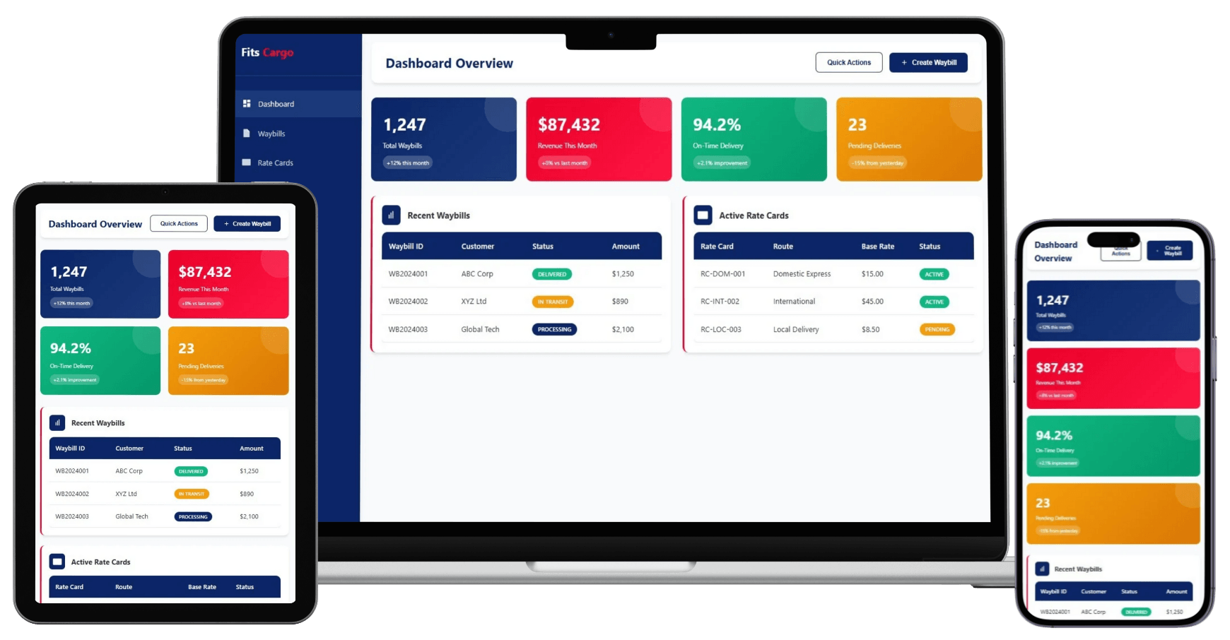 The custom web application optimized Fits Cargo’s logistics workflow by automating rate card assignments and simplifying waybill management. This led to increased operational efficiency, improved billing accuracy, and reduced manual effort across logistics processes.